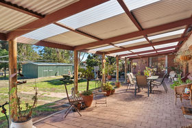 Outdoors is where this property truly shines. A covered and paved entertaining area spans the length of the home, the perfect spot to relax or entertain with friends or family, enjoy a BBQ and soak in the surrounding landscape.