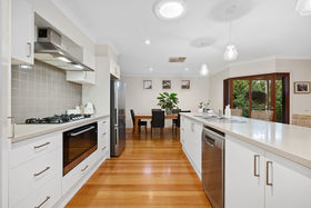 Be blown away by the size of the open-plan living area. It features a contemporary kitchen with 900mm under-bench oven, gas cooktop and rangehood, a dishwasher, stone benchtops, wide pot drawers and a corner walk-in pantry.
